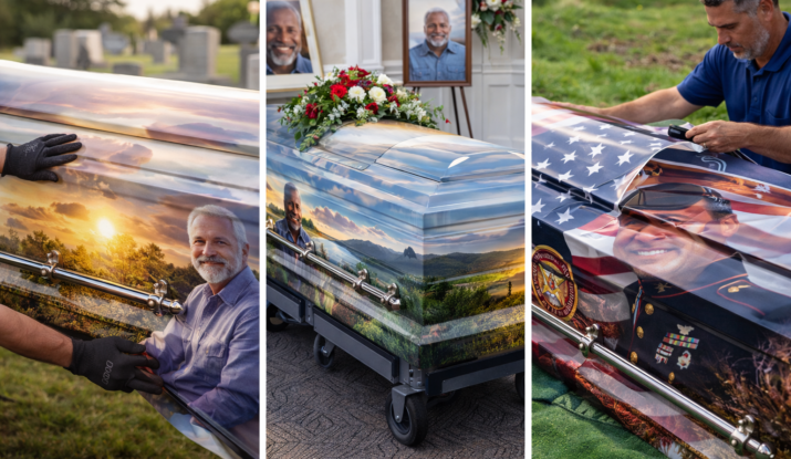 A casket wrap is an innovative and personalized way to memorialize a loved one, offering an alternative to traditional casket finishes. Unlike standard caskets that typically feature wood, metal, or a simple fabric covering, casket wraps are designed using high-quality vinyl materials that can be custom printed with images, patterns, and text. This unique tribute allows families to design casket wraps that reflect the personal themes, interests, or cherished memories of the deceased, creating a more meaningful connection during the memorial service.