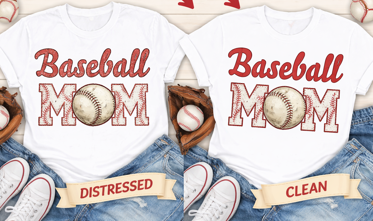 Clean (Solid Print), Distressed (Vintage Look)