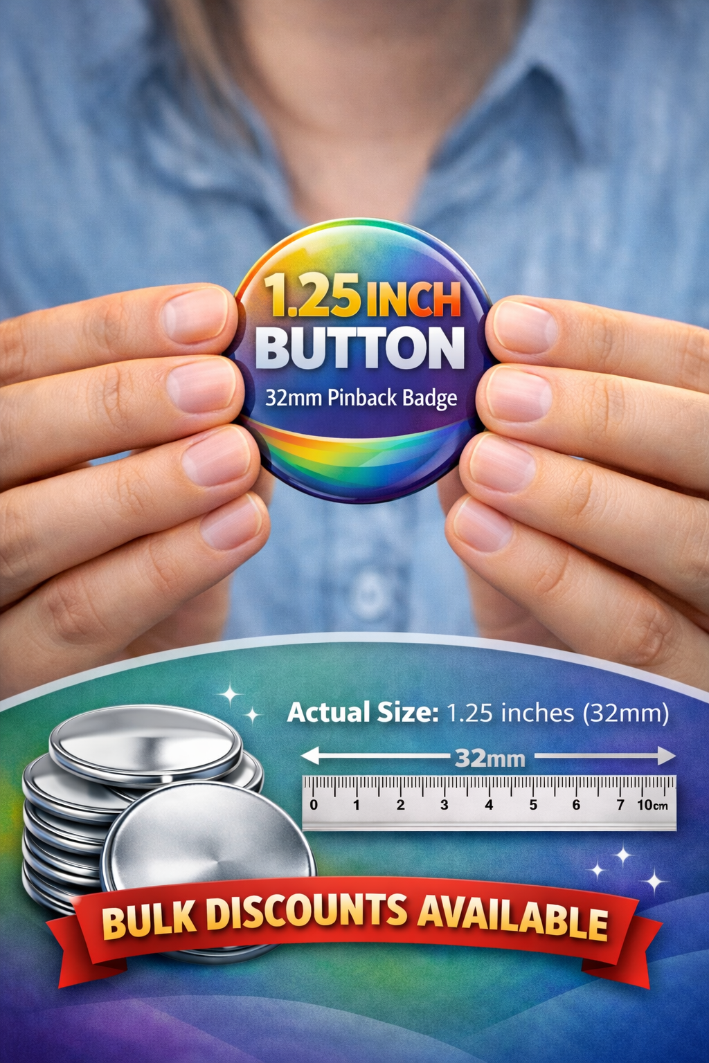 Upload any photo, logo, or design, and I’ll turn it into a high-quality 32mm (~1.25 inch) pinback button made just for you!
