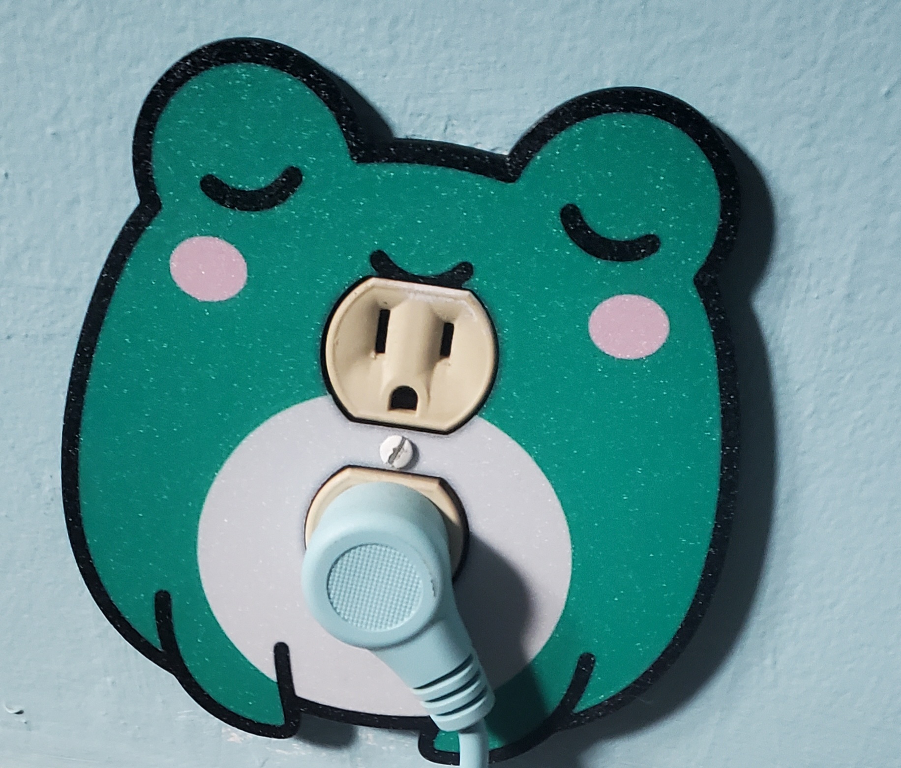 This cute frog wall plate is 3D printed to order and designed to fit standard U.S. wall switches and outlets. It’s a fun, playful accent for kids’ rooms, nurseries, playrooms, or anyone who loves whimsical decor.