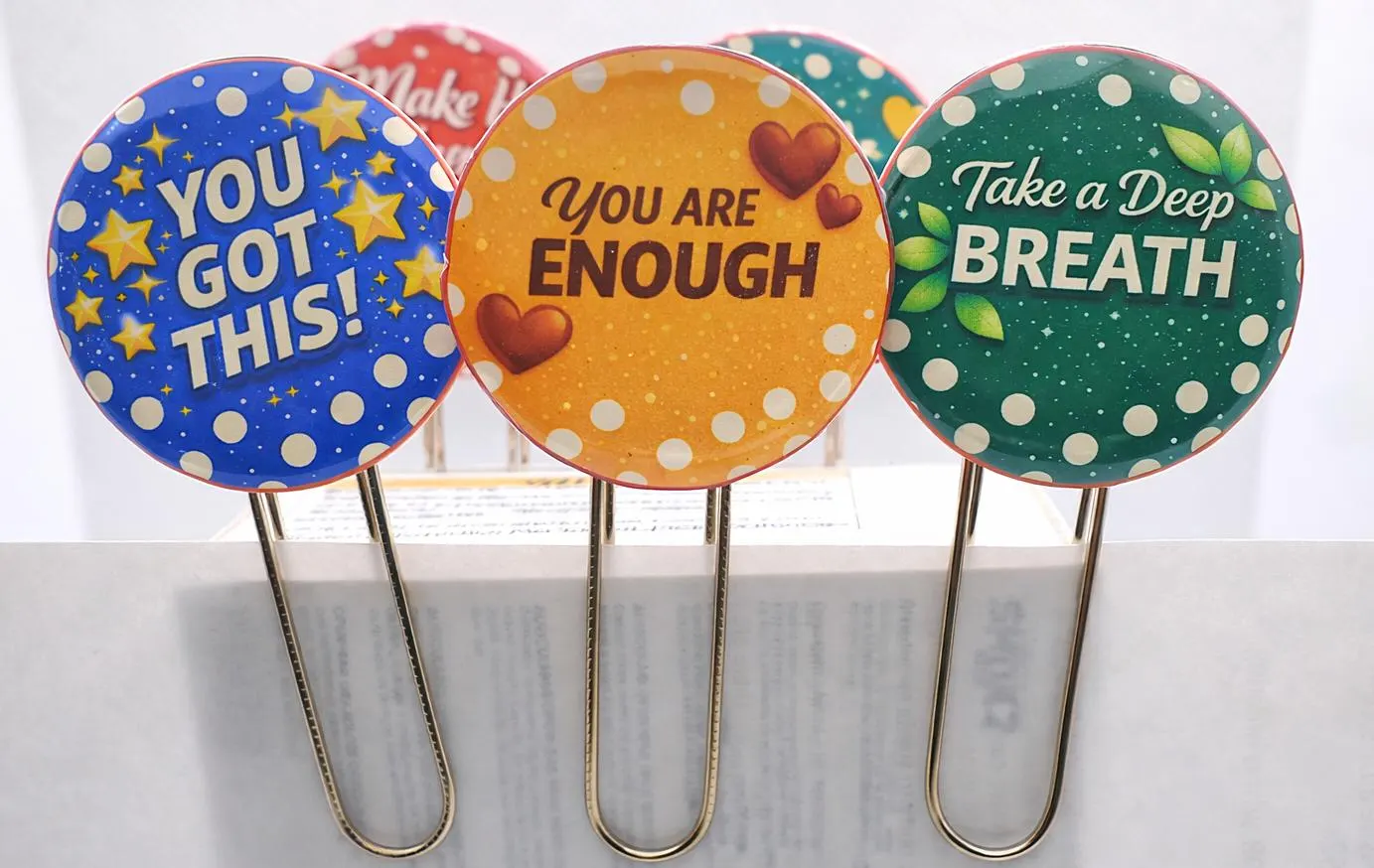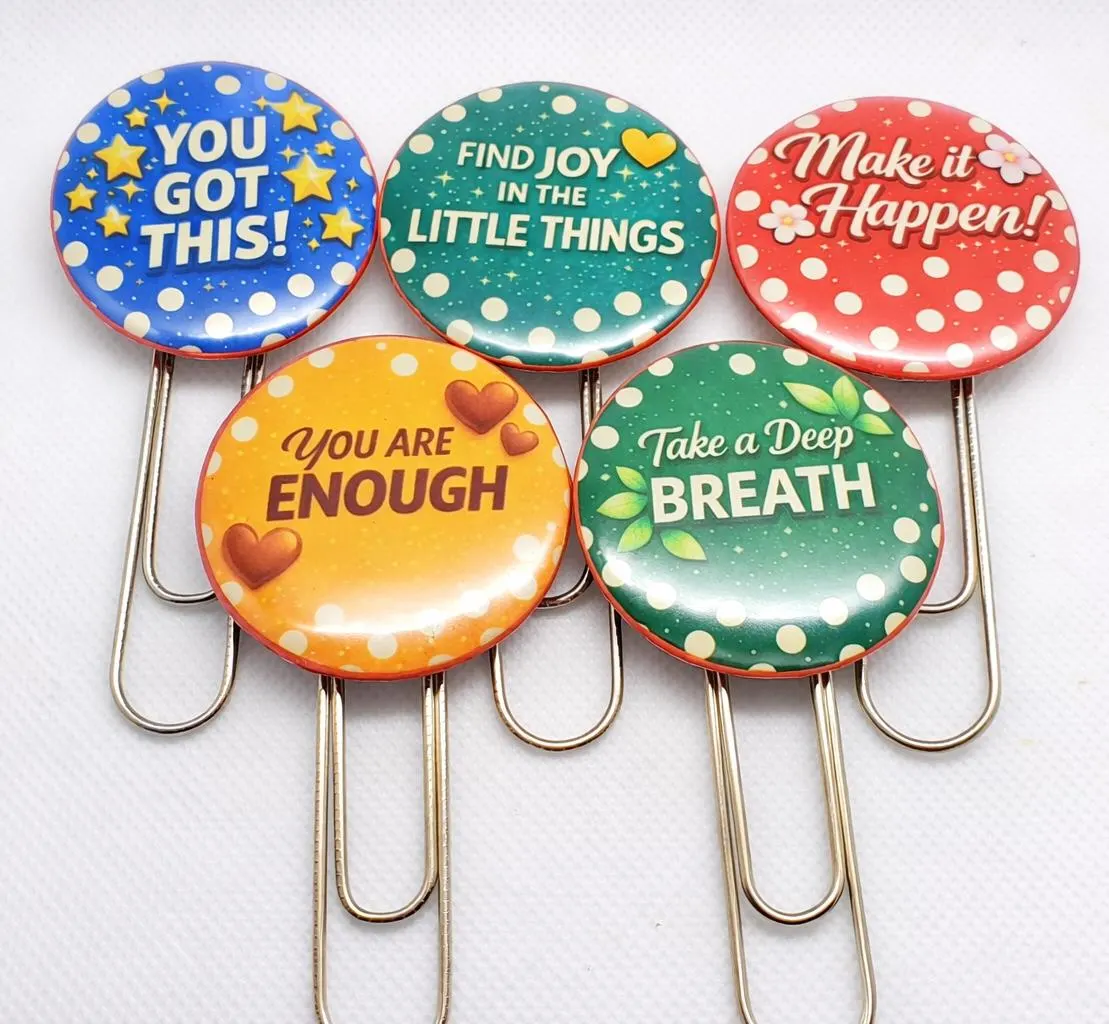 Each clip features a bold, uplifting affirmation paired with a durable metal paperclip, making them both functional and inspiring.